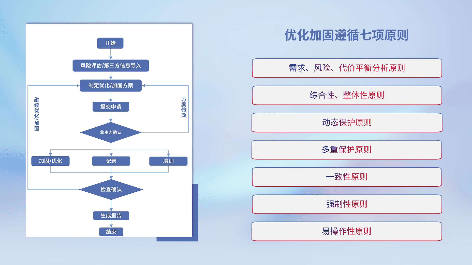 最大程度利用现有资产,,,对评估发现的问题进行封堵与整改,,,防止漏洞被利用,,,,提升整体网络安全性,,,,为客户带来高标准的优化加固服务。。